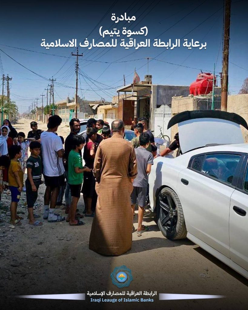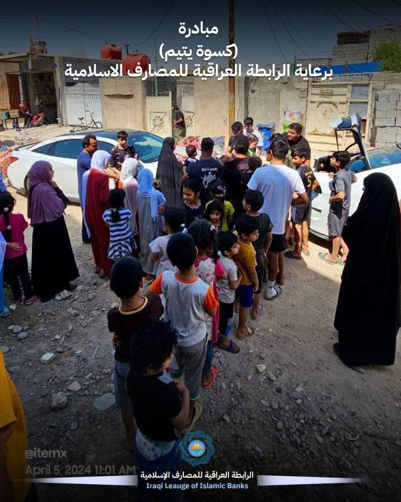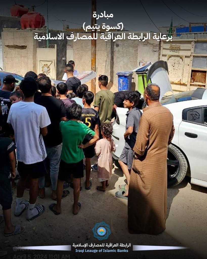 يواصل فريق الرابطة العراقية للمصارف الإسلامية جولاته الميدانية لتوزيع كسوة العيد ضمن مبادرته الإنسانية في عدد من مناطق مناطق العاصمة بغداد وأطرافها منها منطقة الحسينية والرشاد و المدائن وجسر ديالى لتوزيع كسوة العيد شملت الأطفال اليتامى وأبناء شهداء الحشد الشعبي و العوائل المتعففة من خلال صندوق (التكافل الوطني) الذي أطلقته الرابطة للمبادرات الإنسانية والمجتمعية
